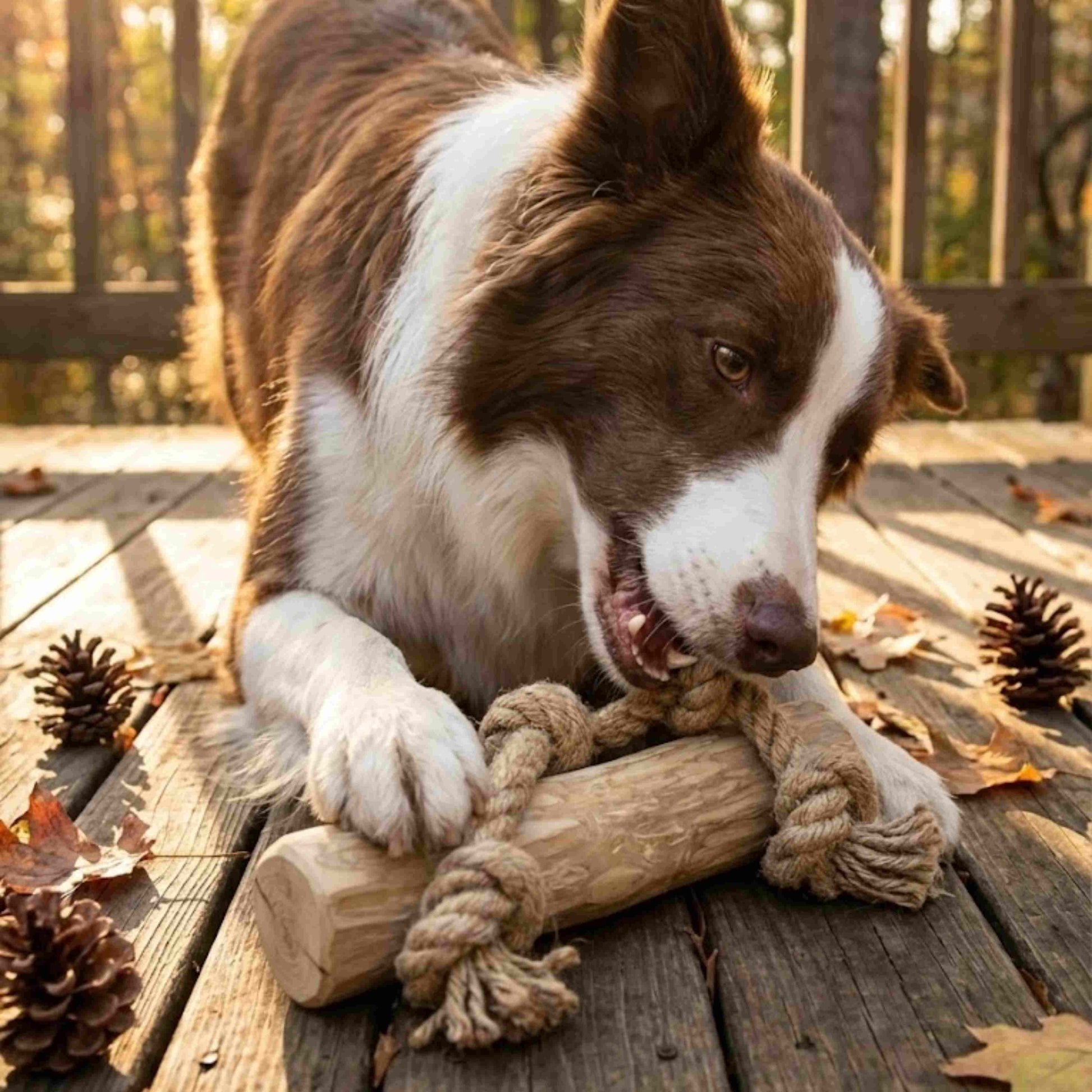 Geef je hond een sterk, natuurlijk en leuk speeltje met het Koffiehout Trektouw – perfect voor actief en gezond speelplezier!